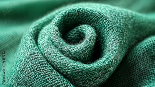 A detailed shot of emerald green cotton fabric, showing its soft texture and fine weave