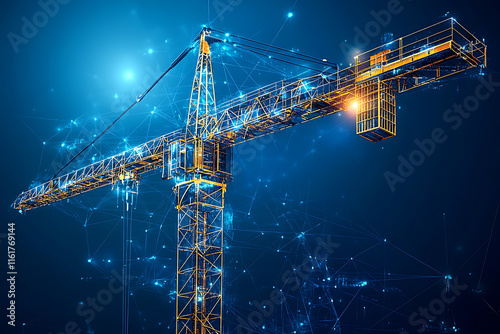 A detailed vector illustration of a tower crane, showcasing its robust structure and intricate details. The design emphasizes construction, engineering, and industrial progress