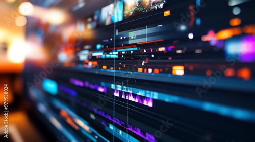 A detailed view of a computer screen showcases a well-organized timeline where various clips are sequenced for editing in a creative environment