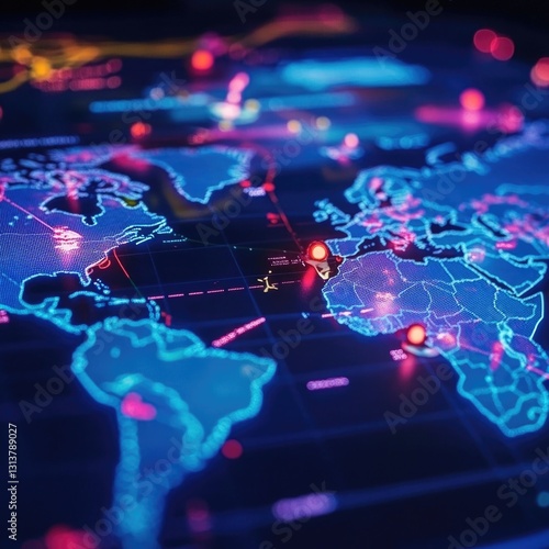 A detailed view of a map showing the continents and countries, ideal for travel or educational purposes