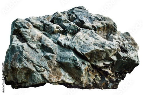 A detailed view of a textured rock against a clean white surface, ideal for use in designs about nature, science or simplicity