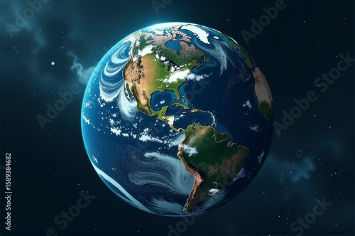 A detailed view of Earth highlighting the Americas with stars in the background.