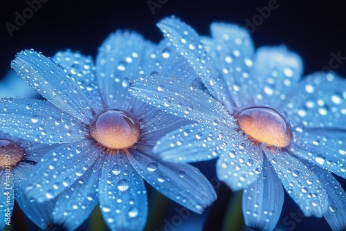 A detailed view of fresh flowers with water droplets on petals, suitable for use in beauty or nature-related contexts