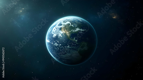 A detailed view of planet Earth from space, showcasing continents and oceans against a backdrop of sparkling stars.