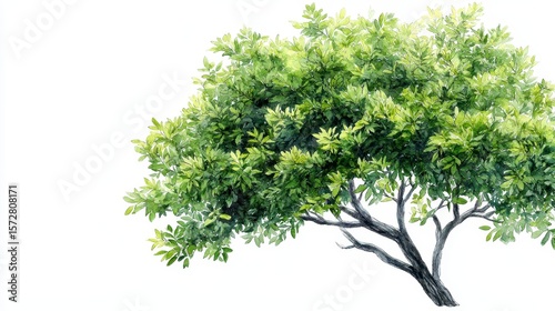 A detailed watercolor painting of a lush green tree with intricate branches and vibrant foliage isolated on a white background perfect for nature designs and illustrations.