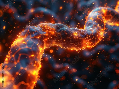 A digital abstract image depicting a glowing, spiraling trail of energy in the cosmos