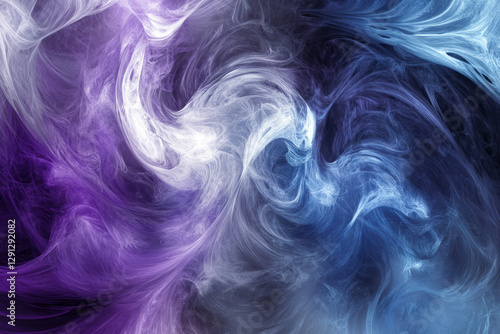 A digital abstraction of swirling smoke and fog in shades of violet, blue, and silver. The ethereal forms twist and turn, creating an otherworldly, dreamlike atmosphere that feels both calming and