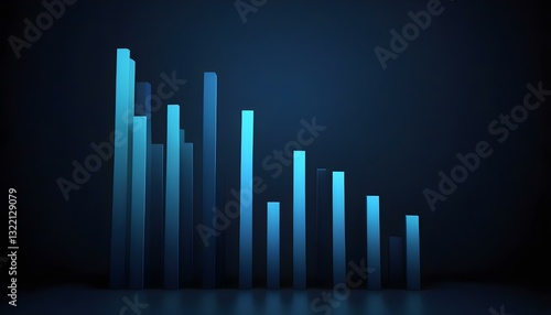 A digital art image shows a bar graph with an upward-pointing arrow, all rendered in a glowing blue hue against a dark background