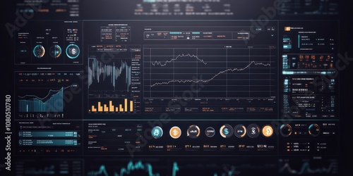 A digital dashboard displaying financial data and stock market trends.