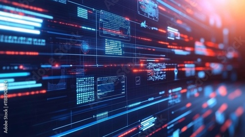 A Digital data streams with vibrant colors and intricate patterns create futuristic atmosphere