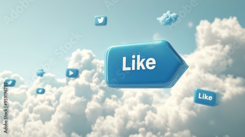 A Digital Expression of Positivity: Floating Arrow Icons Emphasizing Likes Amidst a Beautiful Cloudy Sky Scene