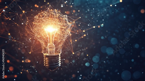 A digital illustration of a bright light bulb connected to a network of lines and dots, symbolizing global innovation