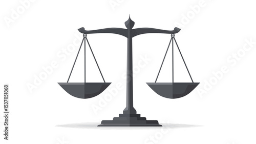 A digital illustration of a classic scales of justice icon. The image features a dark gray, stylized representation of the scales against a pure white background.