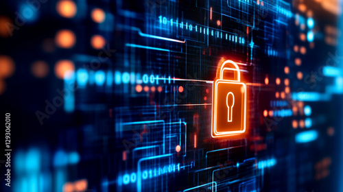A digital lock symbol on a vibrant, tech-inspired background, representing cybersecurity and data protection.