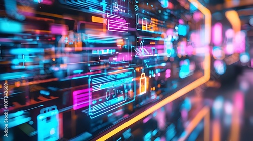 A digital marketplace showcasing futuristic floating product holograms and an ultra modern interactive virtual reality shopping interface