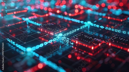 A digital network with glowing lines and bokeh in a futuristic technology design.