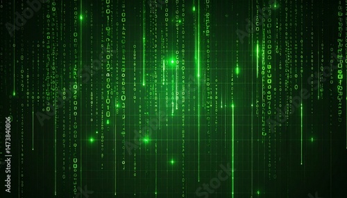a digital rain of glowing green numbers and lines on a dark background, showcasing the essence of digital code and technology