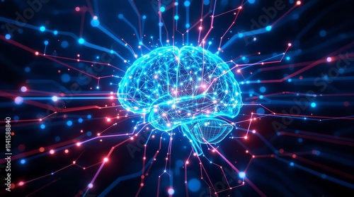 A digital representation of a brain with interconnected neural networks, symbolizing artificial intelligence and neural connections