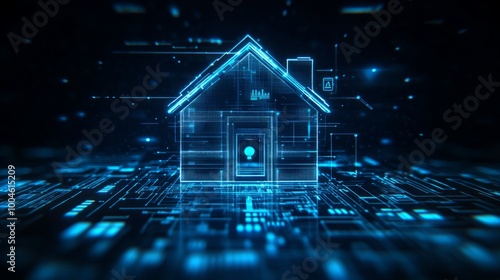 A digital representation of a house symbolizing smart home technology and connectivity.