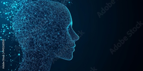 A digital representation of a human head with a network of connections, symbolizing technology.