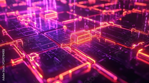 A digital representation of data blocks being validated, with glowing lines forming a secure chain