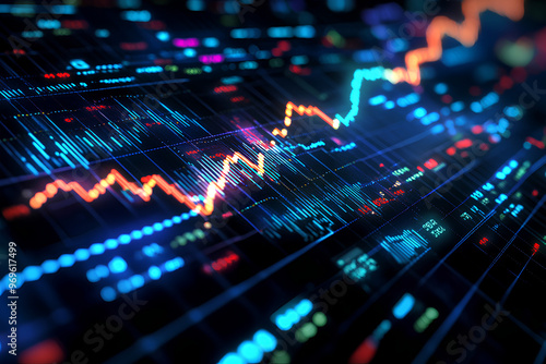 A digital representation of financial data with colorful graphs and charts.