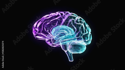 A digital representation of the human brain, often used in scientific and educational materials to symbolize cognitive functioning, intelligence, and mental processes.