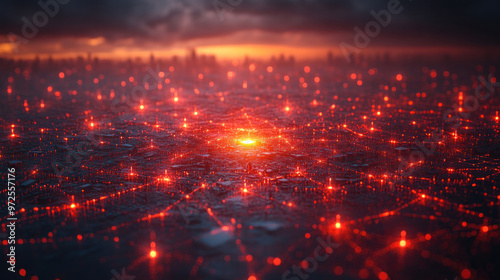 A digital security alert pops up against a network of data points, signaling a potential breach.