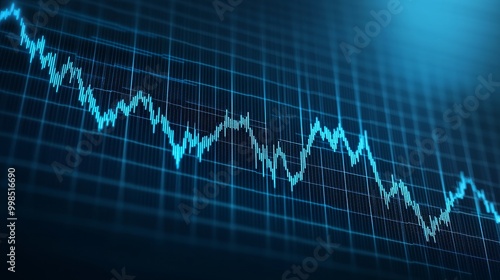 A digital stock market graph showcasing a downward trend with blue lines over a grid background.