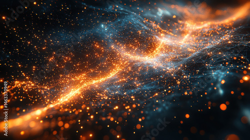 A digital tapestry woven with shimmering strands of light, representing the interconnected network of quantum computing, a vast global intelligence system, illuminated by the subtle glow of