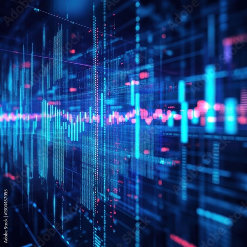 A digital visualization of data, featuring vibrant blue and pink lines, representing analytics and technology trends in a futuristic environment.