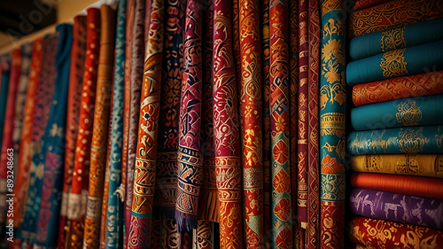 A display of colorful Indian textiles, representing traditional craftsmanship and cultural richness.