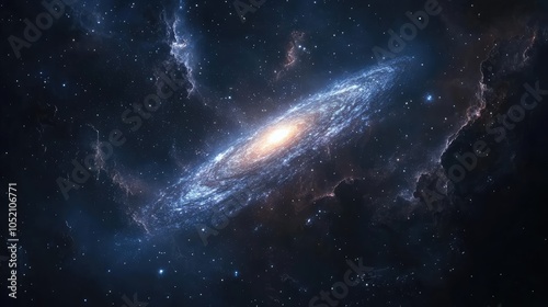 A distant galaxy surrounded by the infinite void, its light softly illuminating the darkness, creating a calm and surreal cosmic landscape