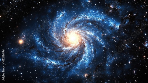 A distant galaxy with brilliant blue spirals and bright star clusters, casting a soothing azure light across the endless expanse of space