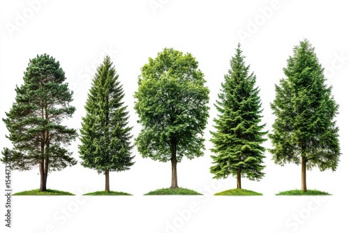 A diverse family of evergreen trees standing tall against a crisp white backdrop in white background. Generative Ai