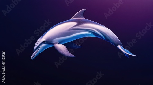 A dolphin leaping gracefully into a rich gradient of deep purple and indigo, representing the peaceful transition of dusk.