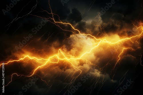 A dramatic abstract background illustration with sharp zigzags of lightninglike yellow against a dark sky