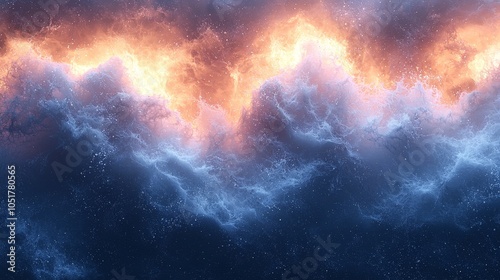 A dramatic depiction of swirling clouds illuminated by fiery light.