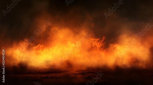 A dramatic display of orange and yellow flames rising against a dark background, creating a fiery atmosphere.