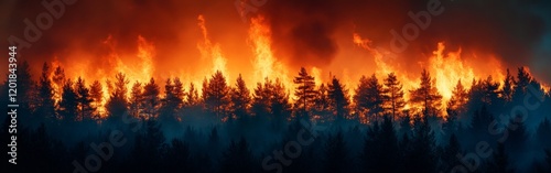 A dramatic image of a rainforest on fire, symbolizing environmental destruction. Ideal for climate awareness projects.