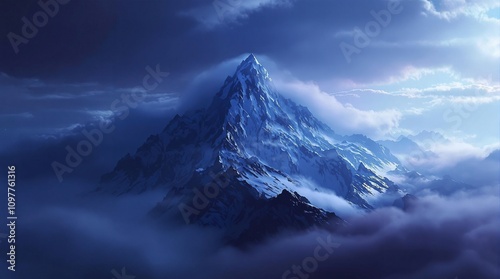 A dramatic mountain peak with a dark and foreboding tone created by solarized effects, , rocky terrain, dramatic landscape, highlands