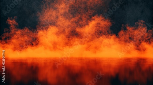 A dramatic scene of swirling orange and black smoke reflecting on a dark surface, creating a captivating and atmospheric visual.