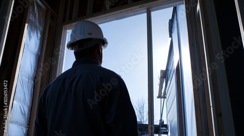 A dramatic view of a construction manager overseeing the installation of prefabricated building components for a sustainable housing project, Prefabricated housing construction scene