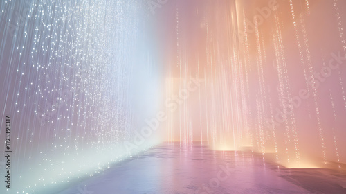 A dreamlike abstract image of cascading light particles in pastel tones, creating a tranquil and immersive visual experience on OLED displays