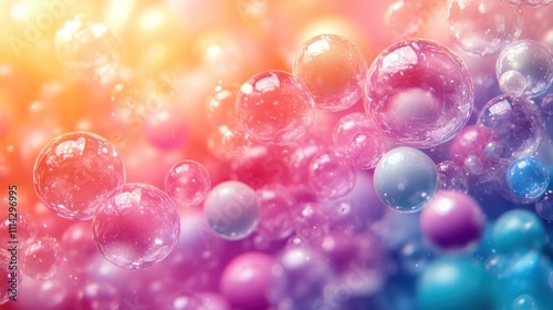 A Dreamy Abstract of Colorful Bubbles Floating in a Rainbow Hues Background, Illustrating Lightness and Joyful Serenity
