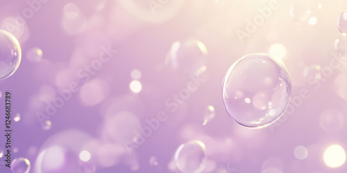 A dreamy lilac abstract background with floating, translucent bubbles in different sizes, glowing softly against a pastel purple gradient.