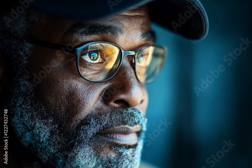 A driver at a licensing office completing an eye exam to confirm their eligibility for a driver license renewal