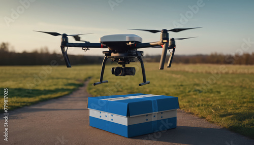 A drone flying with a package, illustrating the transformation of the shopping experience in Honduras.