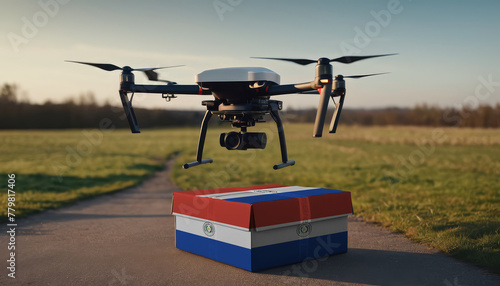 A drone flying with a package, illustrating the transformation of the shopping experience in Paraguay.