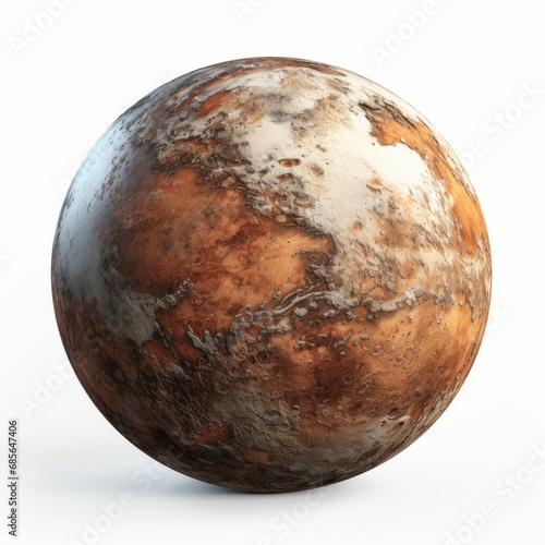 A dry and soil planet made of clay and sand isolated on white background, generated by AI.